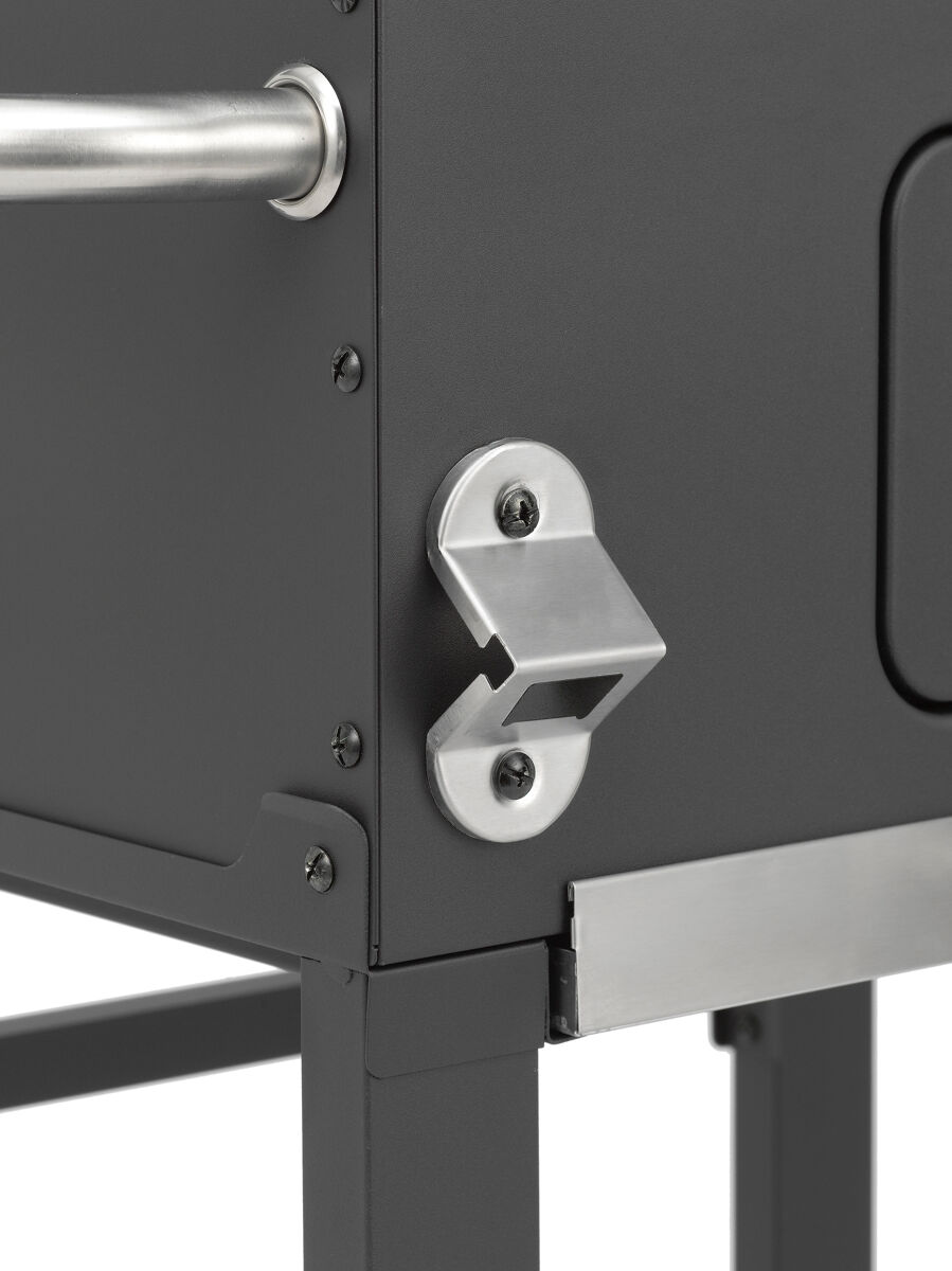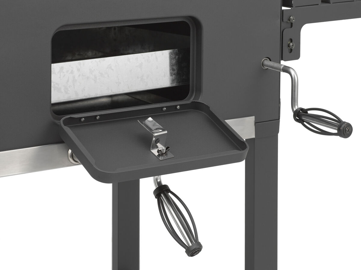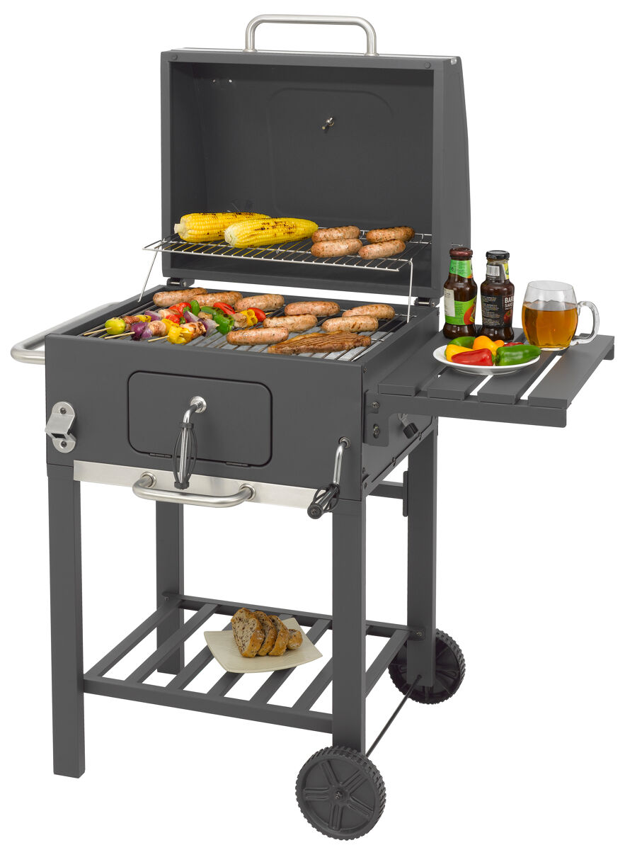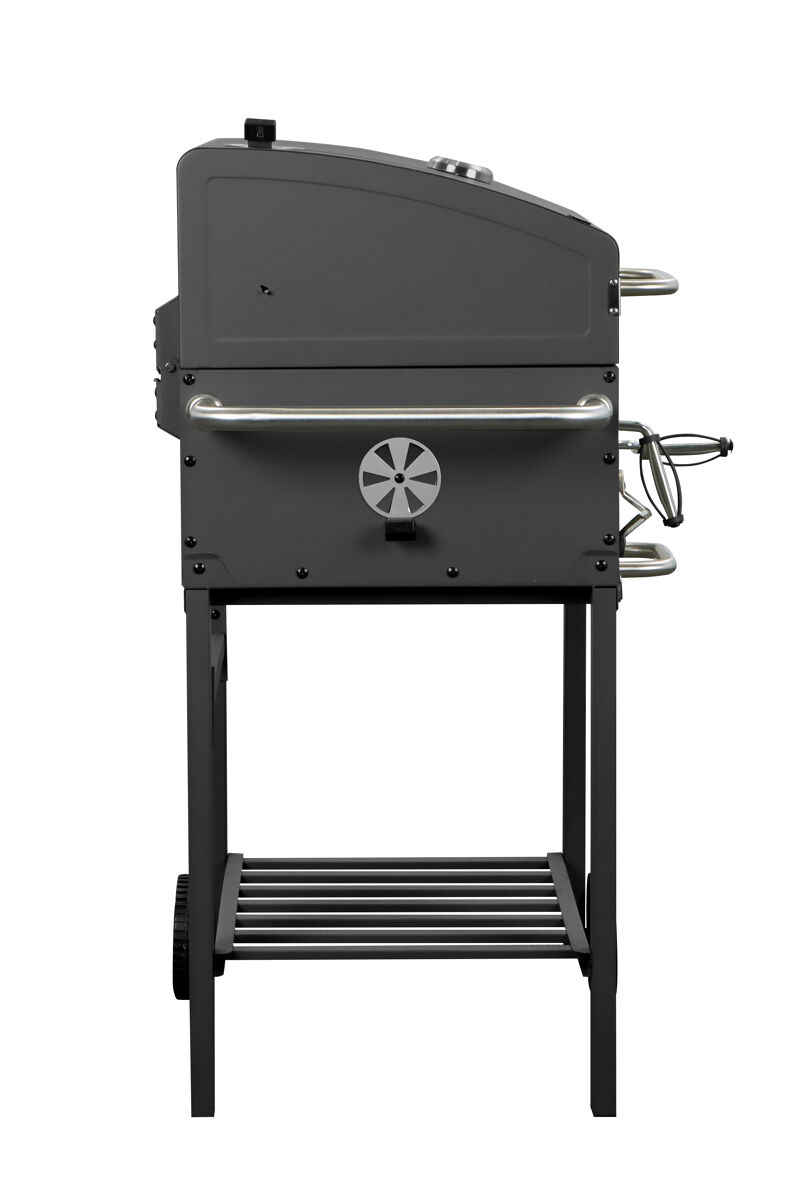 Disfruta de auténticas parrilladas con la barbacoa de jardín KOA en elegante negro e inox. Su sólida estructura de acero con tapa mide 100x106,5x70cm, ofreciendo espacio y resistencia. Equipada con parrilla regulable en altura, termómetro integrado y bandeja para cenizas para un uso práctico y seguro. Incluye abrebotellas y estante lateral plegable, perfectos para mayor comodidad. Ideal para compartir momentos al aire libre con familia y amigos.