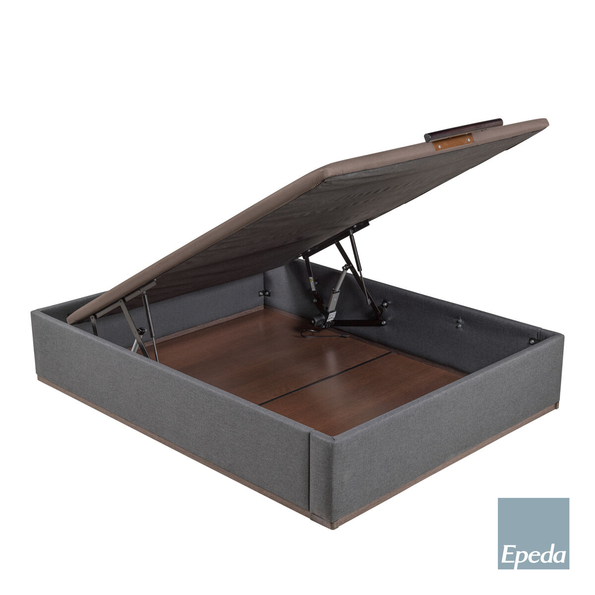 Este canapé abatible tapizado textil de alta capacidad cuenta con una cómoda apertura eléctrica que combina estilo y comodidad. Su tapa única compuesta por una estructura metálica y tapizado de tejido 3D garantiza resistencia y transpirabilidad. El diseño incluye la tecnologá Base Air System (B.A.S.), asegurando una perfecta ventilación y una superficie duradera para un descanso de calidad. Dispone de tirador y zócalo de madera, así como de arquillo sujeta colchón. El sistema de apertura eléctrico con control remoto maximiza el espacio interior de la cubeta, manteniendo el cableado eléctrico oculto y proporcionando un acceso frontal cómodo y fácil. En caso de emergencia siempre queda la tranquilidad de poder abrirlo de manera manual. Con su cubeta en color piombo, este canapé es una solución elegante para cualquier habitación.