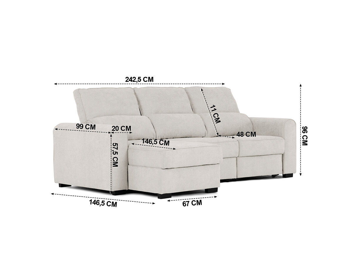 El Chaise Longue CONNOR en color beige es la combinación perfecta de comodidad y funcionalidad. Este sofá se transforma fácilmente en una cama, proporcionando versatilidad y practicidad en tu hogar. Con un diseño elegante y moderno, el Chaise Longue CONNOR añade estilo a tu sala de estar y ofrece un espacio adicional para descansar o recibir visitas. Perfecto para optimizar el espacio en tu hogar sin renunciar al confort y al buen gusto.