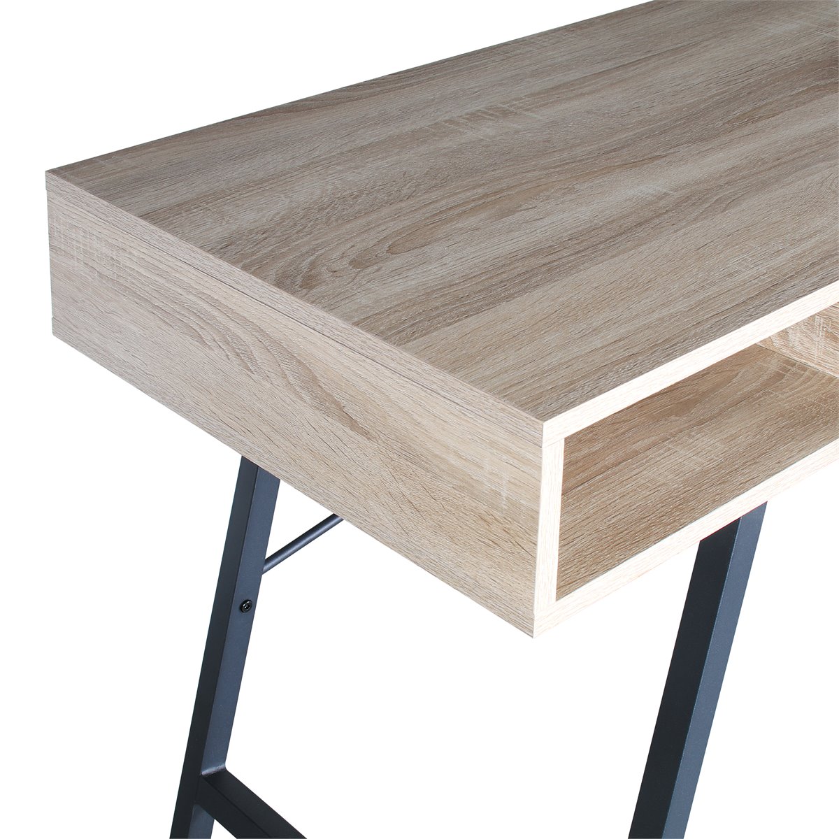 Transforma tu espacio de trabajo con el escritorio ANKO, la combinación perfecta de funcionalidad y estilo. Con un diseño en color roble y negro, este escritorio se integra armoniosamente en cualquier ambiente moderno. Fabricado con material MDF de alta calidad, garantiza durabilidad y resistencia. El práctico cajón ofrece un espacio ideal para mantener tus objetos esenciales organizados y al alcance. Con medidas de 76x120x48 cm, el escritorio ANKO es compacto y versátil, adaptándose a tus necesidades sin comprometer el espacio. No esperes más para renovar tu oficina o rincón de estudio con este elegante escritorio. ¡Adquiérelo ahora y potencia tu productividad con clase!