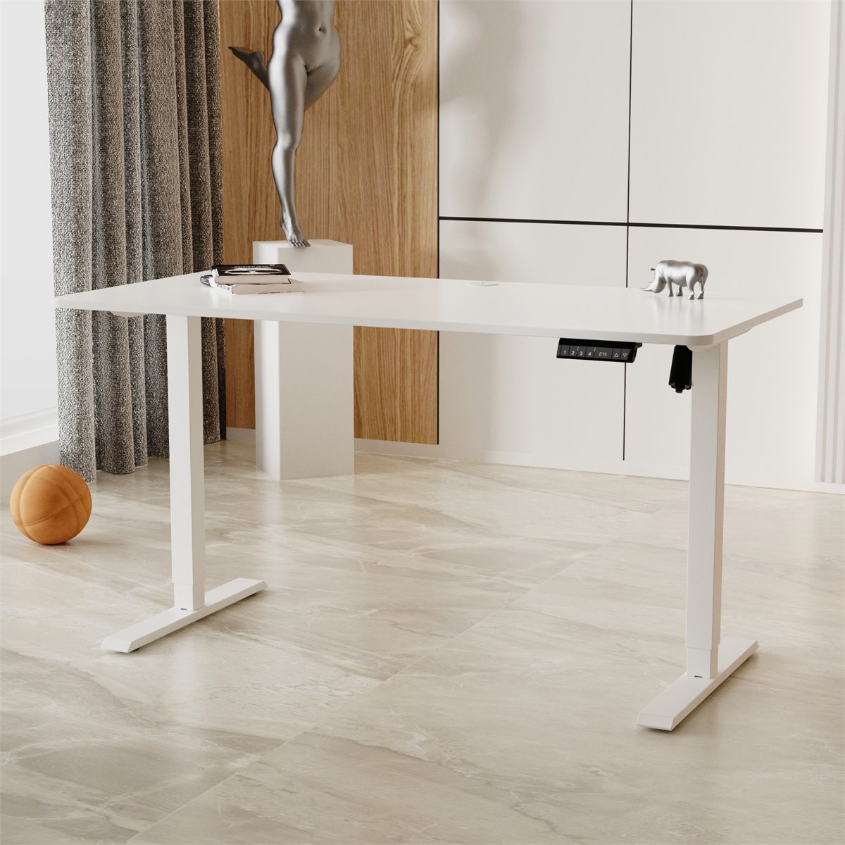 Transforma tu espacio de trabajo con el escritorio PINKY elevable, la solución perfecta para combinar estilo y funcionalidad. Este elegante escritorio blanco, fabricado en MDF con robustas patas de metal, no solo es un mueble atractivo sino también práctico. Con sus generosas medidas de 100 cm de alto, 140 cm de ancho y 70 cm de fondo, proporciona amplio espacio para tus tareas diarias mientras se adapta a cualquier ambiente.
