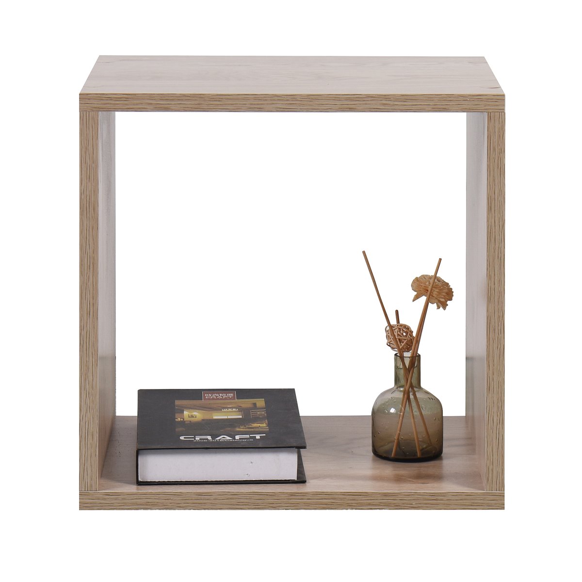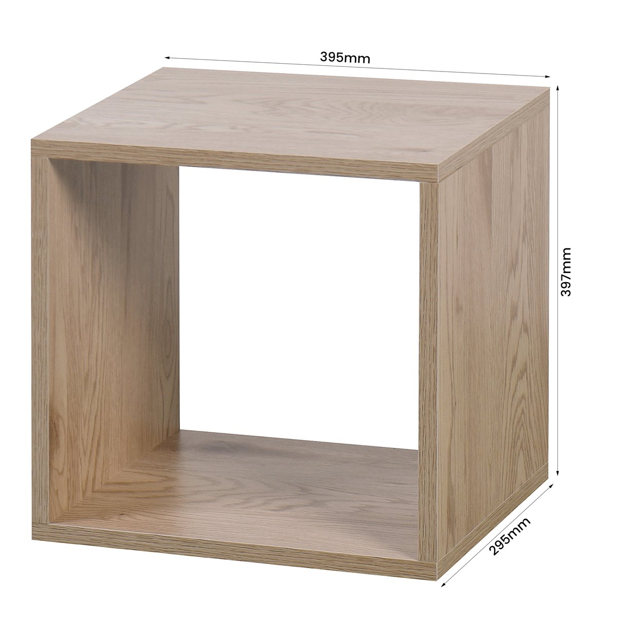 La estantería cuadrada CUBOX presenta una estructura robusta de MDF de 18 mm de grosor, lo que garantiza durabilidad y resistencia. Su elegante color roble y diseño en forma de cubo la convierten en una opción ideal para añadir un toque moderno y funcional a cualquier espacio. Con unas medidas de 39,5 cm de ancho, 39,7 cm de alto y 29,5 cm de fondo, ofrece un almacenamiento práctico sin ocupar demasiado espacio, siendo perfecta para organizar libros, decoraciones u otros objetos.
