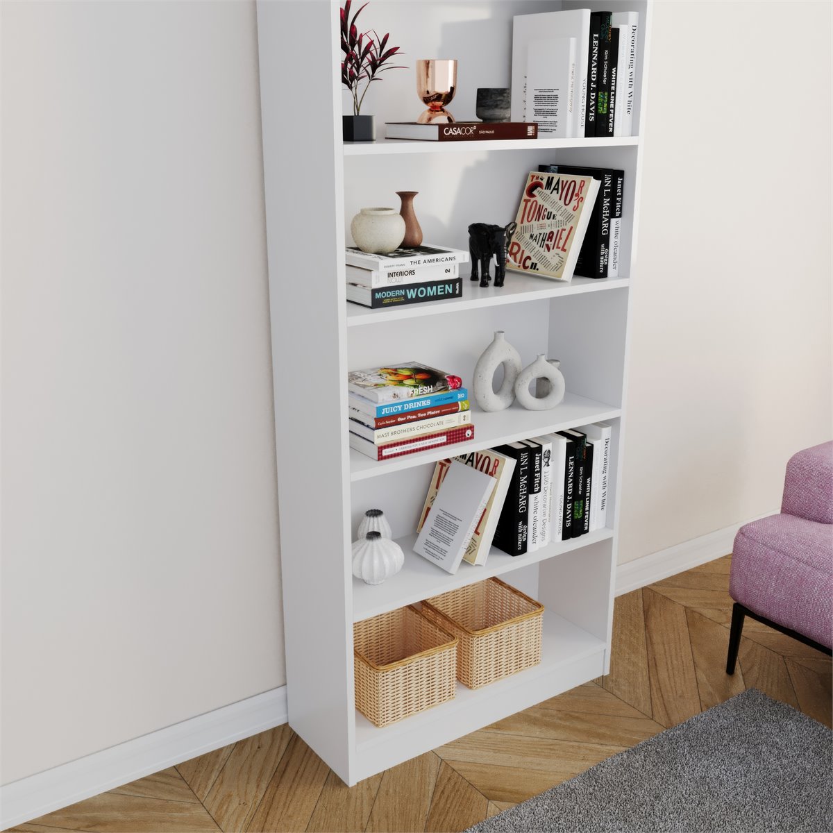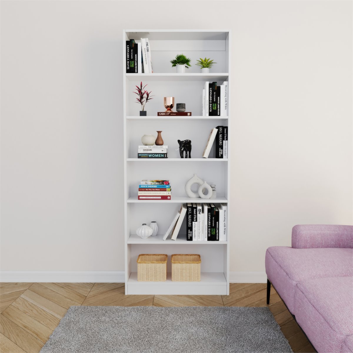 La estantería EMA en color blanco es ideal para tu hogar u oficina. Con unas medidas de 79 cm de ancho, 198 cm de alto y 28 cm de fondo, ofrece amplio espacio de almacenamiento gracias a sus 6 huecos. Fabricada con estructura de melamina, garantiza resistencia y durabilidad. Su diseño moderno y versátil se adapta a cualquier ambiente, brindando funcionalidad y estilo a tu espacio. ¡Organiza y decora con EMA!