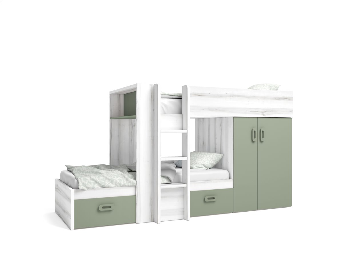 ¡Despierta con estilo cada mañana con Litera tren MOOD! Diseñada con melamina de alta calidad, esta litera combina a la perfección el color blanco y verde para brindarte un ambiente relajante y acogedor. ¡No más preocupaciones por el espacio, ya que es ideal para colchones de 90x190 cm! Con Litera tren MOOD reversible, podrás aprovechar al máximo cada rincón de tu habitación sin sacrificar la comodidad ni el estilo. ¡Dale un toque moderno y funcional a tu hogar con Litera tren MOOD!